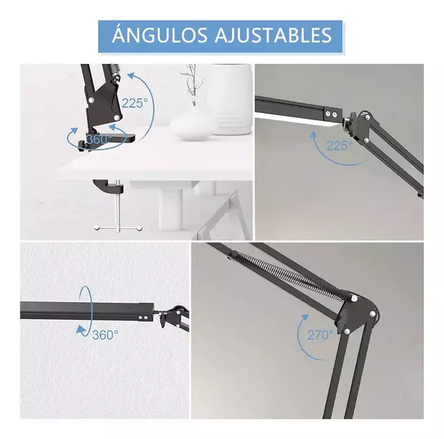 Una herramienta práctica y moderna que mejora la funcionalidad y estética de cualquier espacio de trabajo. Su diseño de doble brazo articulado, iluminación regulable y conexión USB brindan comodidad, eficiencia y versatilidad. Una excelente elección para quienes valoran la calidad, el confort visual y el diseño inteligente en su rutina diaria.